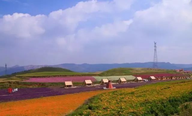 作为距离西宁市城区较近的花海之一,花海涉及27个品种的花卉,花期从七月开始一直持续到国庆节,蓝色的鼠尾草、黄色的向日葵、迷人的格桑花……