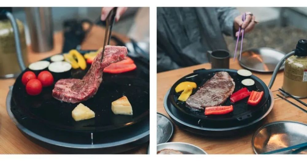 不知何时起,露营爱好者们爱上了使用圆盘形铁锅烹饪各种食材——煎牛排、韩式烤肉、生煎包和铁板烧。SNOW PEAK针对这种铁板煎盘推出了专门的烹饪器具:GS-430铁板烧圆盘烤炉。