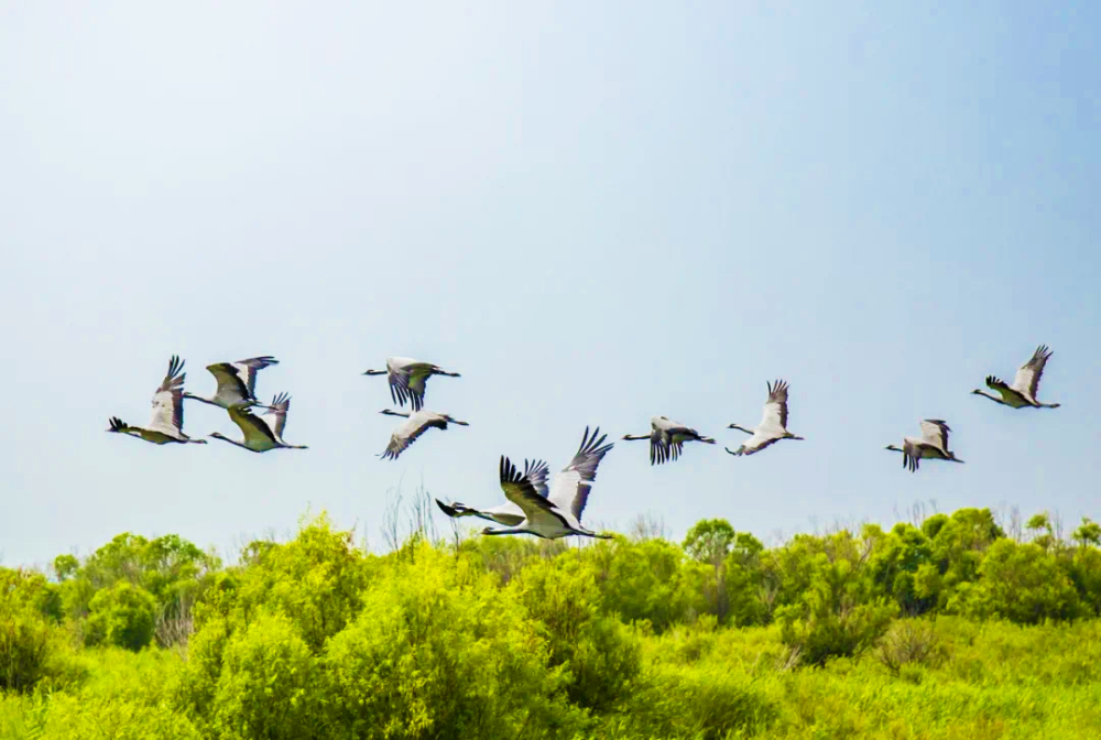 来到鸟类科普园,能够看到丹顶鹤和蓑羽鹤自由翱翔,浩浩荡荡的雁群“扑面而来”,啾啾长鸣。