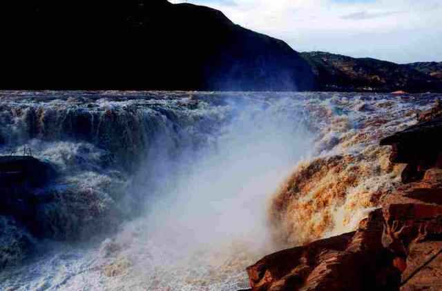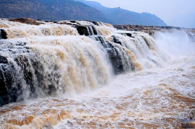 壶口瀑布,是中国第二大瀑布,世界上最大的黄色瀑布。”千里黄河一壶收”,黄河至此,两岸石壁峭立,河口收束狭如壶口,故而得名。