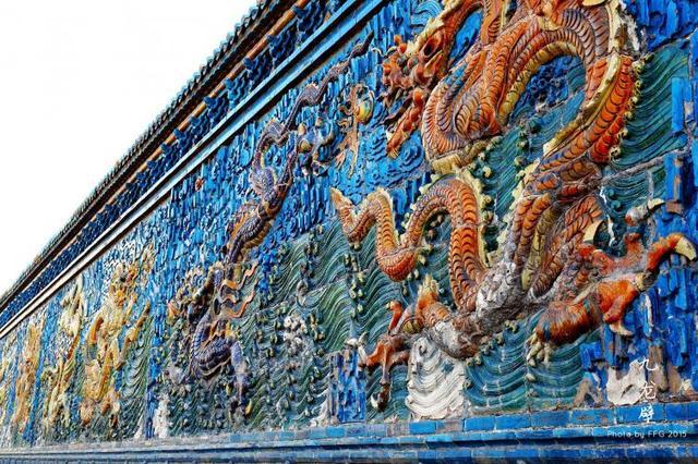 九龙壁,建于明代洪武末年,是明太祖朱元璋第十三代王朱桂府前的照壁。是中国现存规模最大,建筑年代最早的一座龙壁。敦实富丽,宛然如生。