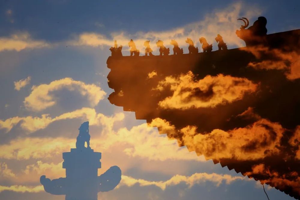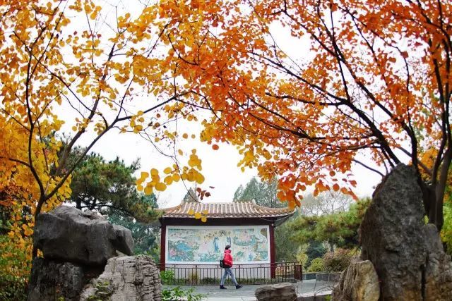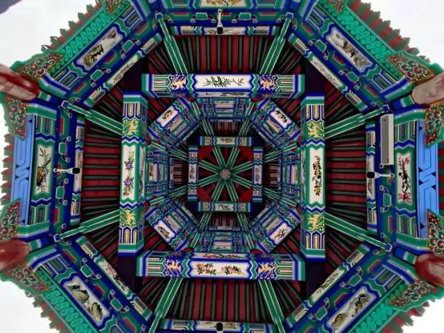 凤凰亭,沿用原仿明清重檐八角亭式样,对建筑形制、细部节点的构造融入了仿明清古建筑元素,屋顶从传统水泥瓦升级为砂浆卧黄色琉璃瓦;综合运用彩绘等级中的最高级的和玺彩画和园林建筑中最常用的苏式彩画,对屋顶和横梁部分的板、椽、斗拱、雀替等构件进行彩绘,较好的融合了仿古建筑的恢宏气派和园林建筑的清新淡雅;对原亭汉白玉栏板、镂空铁艺花窗等老部件予以保留翻新,最大限度保持原有风貌,使这一城市地标性景观再焕勃然生机。