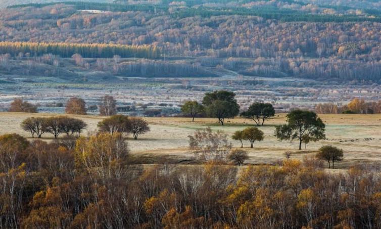 9月底时,树木的叶子绿的翠绿、红的鲜红、黄的金黄,10月份秋风来袭,树叶纷纷凋零,满地是金黄的树叶,此时来乌兰布统别有一番怀旧萧索的情怀。