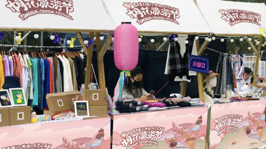 闲逛溪谷旁的桐花文创市集