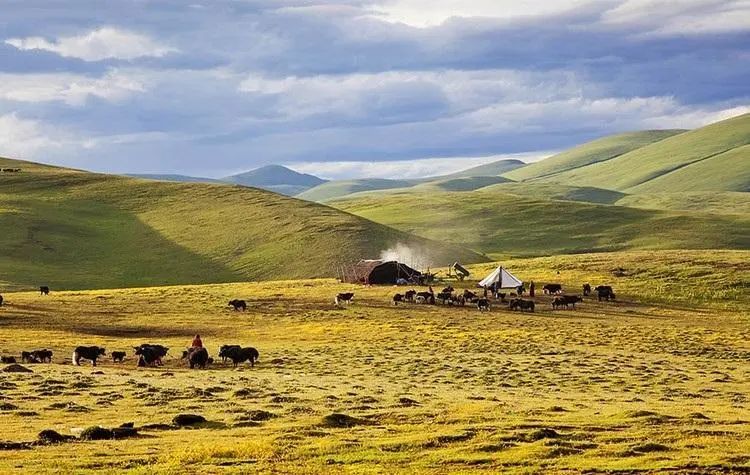 在甘孜州理塘县县城以西,群山的环抱之中,如海的草原郁郁葱葱,这就是毛垭大草原。是横断山沙鲁里山脉中段最大的草原,海拔3800—4500米。夏日,湛蓝的晴空下,牛羊成群,绿草连天,盛开的野花姹紫嫣红,打一个滚就是一身花香;秋天,晴空高远,云朵洁白,草木金黄;冬日则是白雪皑皑,原驰蜡像。季节的变化赋予大草原无边的神韵与风姿。