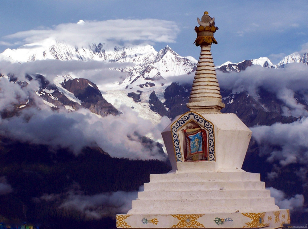 6)世界佛教史上第一位转世活佛、噶玛噶举三世法王让迥多吉的名作《卡格博焚香祭文》一书中,明确的尊认梅里雪山及卡瓦格博峰是世界所有神山的总主;在佛教世