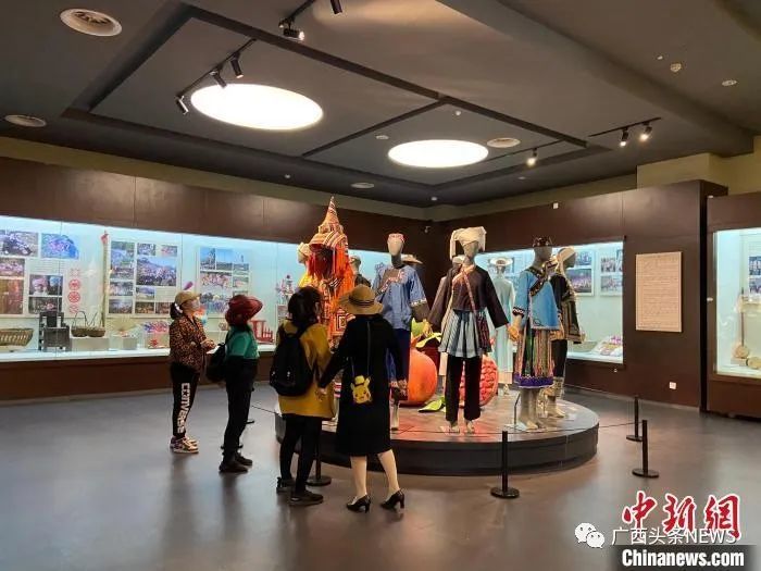 广西民族博物馆位于邕江之畔,是一座展示民族文化的专题博物馆。图为民众在广西民族博物馆参观。林洁琪 摄