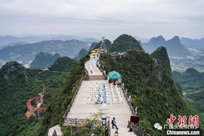 图为太极运动爱好者在阳朔县如意峰景区的如意云顶表演太极拳。唐梦宪 摄