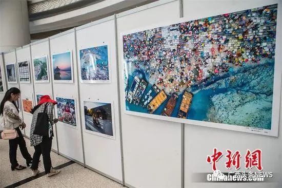 观众参观《汉郡合浦丝路明珠》摄影展作品。中新社记者 陈冠言 摄