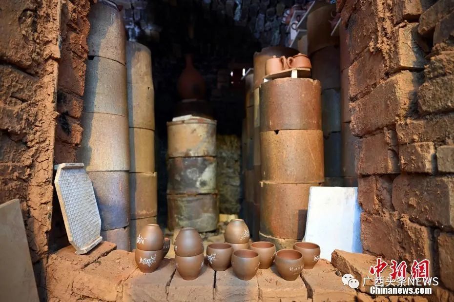 钦州坭兴陶是中国四大名陶之一,图为钦州千年坭兴陶古龙窑开窑。中新社记者 毛建军 摄