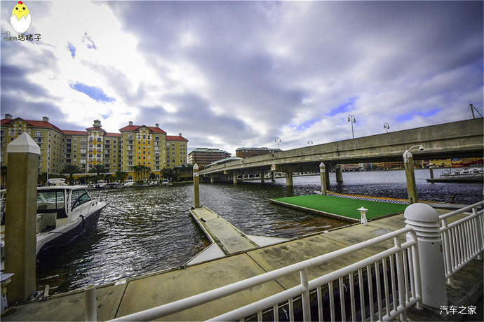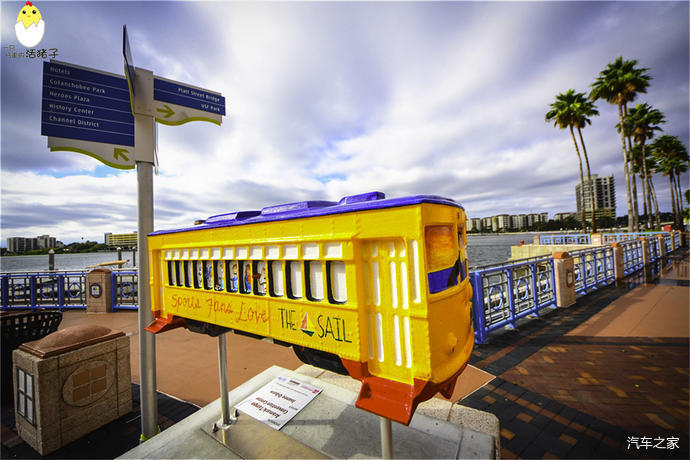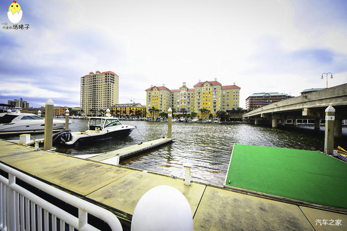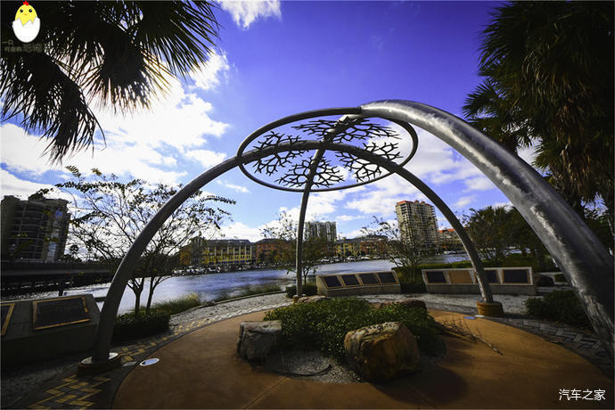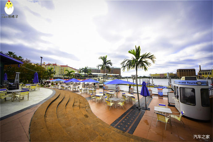 坦帕会展中心: 这个会展中心十分的漂亮,主体是浅黄色。但是门廊的柱子,墙壁上的雕花,以及楼天旁的扶手全部是好看的天蓝色,跟河水交相辉映。这座中型规模的会展中心是建在一个要塞Fort Brooke旧址上的,在会展中心里既可以看到坦帕湾的风貌,又能一览城市的天际线。