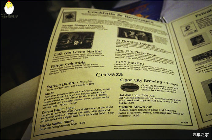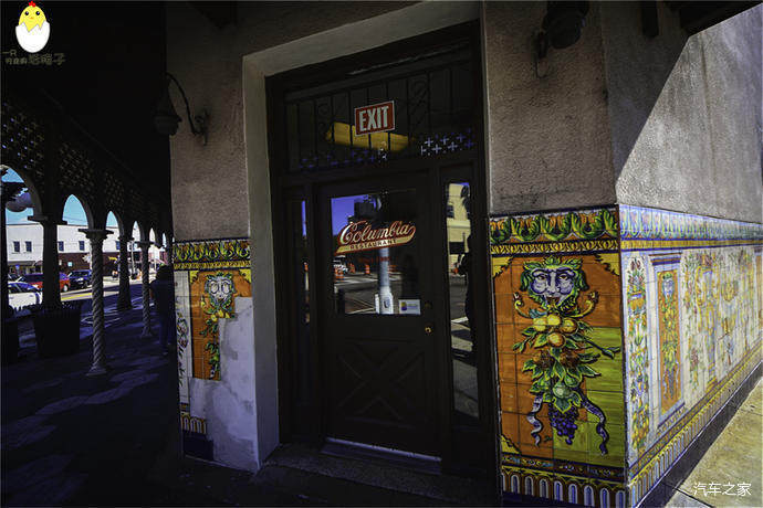 哥伦比亚餐厅可谓坦帕最著名的餐厅之一了。它最引以为豪的就是它悠久的历史,从1905年开始,经营了110周年,经历了五代人。本来想周五晚上去吃,结果发现它家周末晚上的等位一定会超过一个小时。于是退而求其次,选在了周六中午。餐厅在极具古巴风情的特色街区Ybor City里,一开始这家店只是一个小咖啡馆,专卖古巴咖啡和古巴三明治给附近烟厂工人,后来餐厅逐渐扩大,我发现它光是一楼就有整整三个大厅,比一般的美国餐馆要大的多。整个餐厅的装修风格以及配色都极具西班牙风情,外墙的彩绘,门厅的壁画,甚至餐具上的装饰,全都美轮美奂。它的菜单十分有意思。每道菜下面除了详细介绍配料以为,还都附赠一个小故事,例如:这道菜取这个名字是为了纪念我们兢兢业业工作了48年的XX员工。再例如:这道番茄沙拉是我爹和我爷爷最喜欢吃的呀!菜肴融合了西班牙和古巴风味,味道还不错。印象最深的还是特色的西班牙海鲜饭啦,会有亲切的服务员帮你把饭从烫手的铁盘转移到餐盘之中。红橙黄绿煞为好看。甜品点的是Guava Turnover “Carmita”。因为对番石榴Guava这种热带水果比较感兴趣。上来之后发现类似于番石榴派,口味还是比较独特的。因为之前跟他们反映过海鲜饭里有没有滤掉的鸡骨,获赠了一份甜品“White Chocolate Bread Pudding”,小故事里写着这是他父亲和祖父最爱的甜品,比他们去其他地方吃到的都要好。他们选用的是特定烘焙坊的古巴面包,配上浓郁白巧克力,牛奶和鸡蛋也是佛罗里达当地的,最后浇上朗姆酱。可惜我们吃的太饱了,对美食鉴赏能力已然跌倒谷底,只是强行把这个甜甜的东西塞进肚子。不过总体而言甜品的分量都很大,两个人分食就差不多了。
