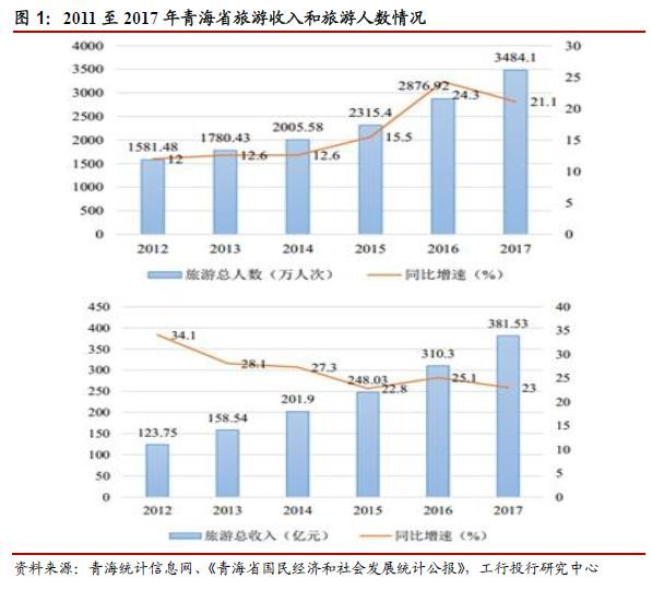 随着西部大开发、“一带一路”的推进,青海省旅游业得到快速发展。2018年1至9月,青海省共接待国内外游客3757.74万人次,同比增速高达20.0%,实现旅游总收入421.70亿元,同比增长21.5%,增速均领先于全国平均水平;其中接待国内游客3751.36万人次,同比增长20.1%;实现国内旅游收入419.30亿元,同比增长21.7%;青海以国内游为主,国内游客占据主要地位,入境游占比很小。2011至2017年,青海省的国内外游客年均增长17.9%,旅游总收入年增长速度达27.2%,除2003和2008年受全国非典和全球金融危机影响外,常年保持10%以上的高速增长。