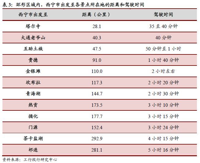 青海省面积72.10万平方公里,东西长约1200公里,南北宽800公里,这意味着省内优质景点之间的距离较远,难以实现聚集效应带来的带动性和吸引力。即使在不考虑海西、果洛等市州的情况下,仅选取以西宁市为中心点,涵盖海东市、海南州、海北州部分地区的环形区域构成的“主要旅游景点集群”,计算西宁至各景点所在地的距离和驾驶所需时间,可以得出均需40分钟至半天时间的车程,如果游客形成一定旅游线路规划,那每次奔赴下一景点的距离平均也在50至100公里左右。同时,由于碎片化分布的单一景区规模不大,且景点之间缺乏中小型旅游项目连接,导致旅游的边际效用无法匹配付出的时间成本和心理成本,也造成青海省难以独立形成具有公认影响力的旅游品牌项目。