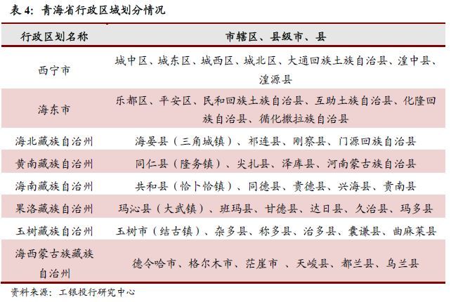 青海省目前下辖西宁市、海东市2个地级市,玉树藏族自治州、海西州、海北州、海南州、黄南州和果洛州6个自治州,6个市辖区,4个县级市,27个县,7个自治县,1个县级行委。基层行政单位有369个乡,34个民族乡,36个镇。此外,青海省有54个少数民族。世居少数民族主要有藏族、回族、土族、撒拉族和蒙古族,其中土族和撒拉族为青海所独有。5个世居少数民族聚居区均实行区域自治,先后成立了6个自治州、7个自治县,其中有5个藏族自治州(玉树、果洛、海南、海北、黄南藏族自治州)、1个蒙古族藏族自治州(海西蒙古族藏族自治州),1个土族自治县(互助土族自治县)、1个撒拉族自治县(循化撒拉族自治县)、2个回族自治县(化隆、门源回族自治县)、2个回族土族自治县(民和、大通回族土族自治县)、1个蒙古族自治县(河南蒙古族自治县)。自治地方面积占全省72万平方公里总面积的98%,区域自治地方的少数民族人口占全省少数民族人口的81.55%。此外全省还有28个民族乡。