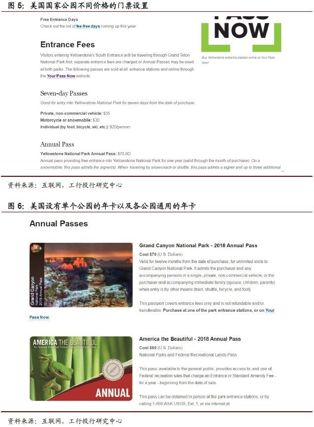 相较而言,门票对于美国国家公园只是作为管理手段,旨在提高人们的环保意识。对国家公园门票的收费标准,国会有专门的立法,确定了哪些地方不能收费,收费的地方应遵循什么样的原则。以大提顿公园为例,其门票为$35/私家车(默认不超过4成人);$30/摩托车,$20/自行车或徒步者。该门票自售卖日起7天内有效。此外,美国还有国家公园年票,价格仅需80美元/私家车,有效期一年,可前往任意美国国家公园。