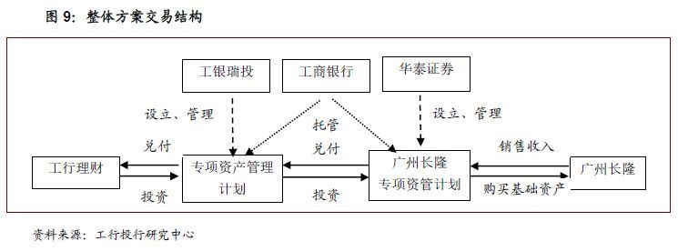 2014年2月28日,中国证监会以《关于核准华泰证券股份有限公司设立广州长隆主题公园入园凭证专项资产管理计划的批复》(证监许可[2014]233号)正式审批通过广州长隆集团有限公司32亿元资产证券化项目。该项目由华泰证券担任计划管理人,我行与华泰联合证券联合担任财务顾问,于2014年6月完成发行募资,专项资产管理计划发行的资产支持证券在深圳证券交易所挂牌上市。我行理财资金投资该资管计划优先级资产支持证券部分份额(其余部分由华泰证券负责推广销售),金额不超过21亿元,期限最长不超过8年(分别为1-8年不等的8个品种)。