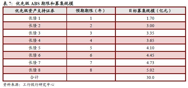 专项计划资产支持证券分为优先级资产支持证券和次级资产支持证券,其中优先级资产支持证券包括长隆1、长隆2、长隆3、长隆4、长隆5、长隆6、长隆7和长隆8等共8档产品。