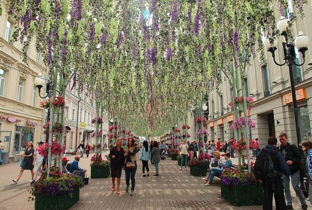 最后要来给大家介绍到的这个景点是阿尔巴特街,它是位于城市中典型的一条非常重要的步行街。大约是在十五世纪的时候建成的。虽然说整个街道的长度不过只有一公里,但是却也成为了市区之内存在的最为古老的街道之一。即使长度没有那么值得一游,整个街道所体现出来的俄罗斯风情却是最为正宗并且浓郁的,所以当地的人们也将它称作是莫斯科的精灵。现在这样的一个街道上呈现出了非正宗的风情,人们在这里能够看到最为传统且古老的民俗艺术,同时也能够看到最为现代时尚的新鲜物品。在街道的两侧有许多古色古香的老店里面贩卖着当地人们的传统手工艺品,还有一系列的餐厅以及咖啡馆,人们可以进去品尝这里的美食。