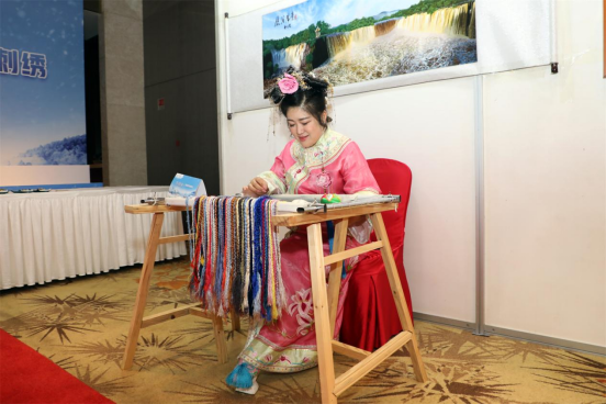 渤海靺鞨绣传承人孙艳玲展示国家级非遗文化满族刺绣