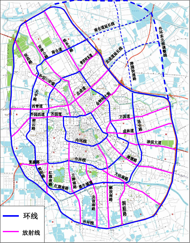 天津主要道路布局示意图