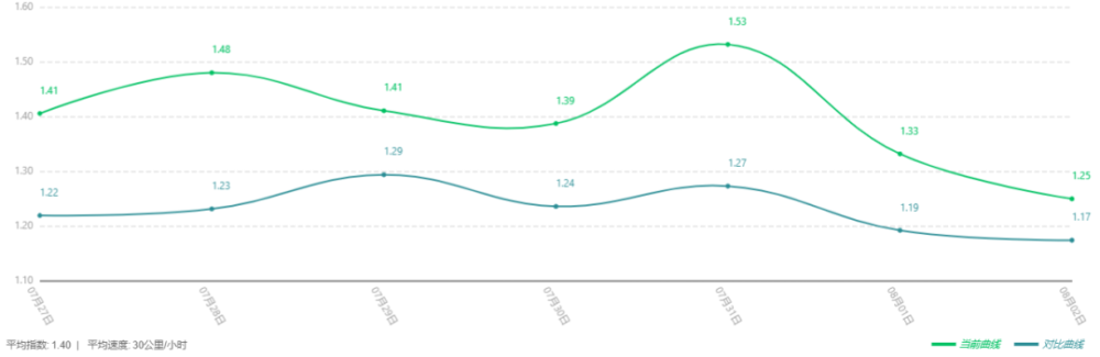 通过对数据的评估对比可以辅助交通管理者在治理拥堵上制定更为精准的方案,除了交通评价月报,优化团队还可以根据实际需求运用互联网平台作为工具,在不同的时间与空间上分析各项交通指数的变化,例如时间上可以划分工作日与节假日,学生放假与开学,不同季节流量的变化,大型活动等,空间上可针对不同功能的区域如生活,行政,商业,旅游等进行分析,使交通管理者可以通过数据评估对比的结果更为直观的掌握不同情况下交通的变化,在接下来的工作中制定合理的预案。