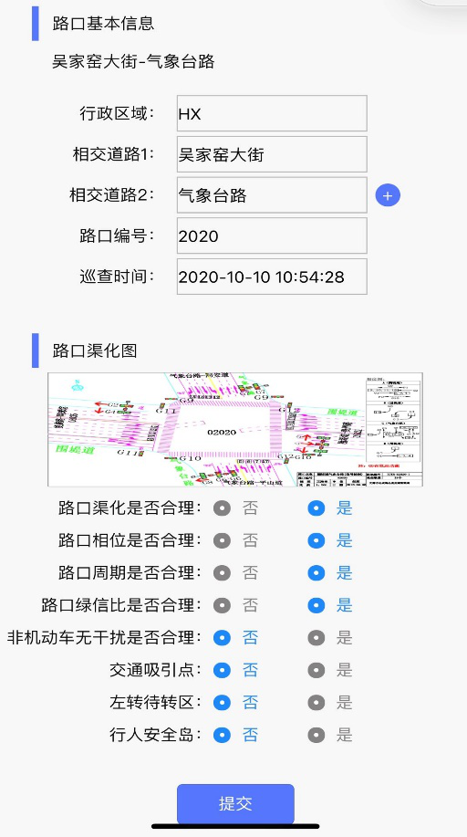 逸兴泰辰优化团队在掌握以上数据的基础上,到现场进行有针对性的调研,优化,并通过公司自主开发的手机小程序对每次调整进行记录,建立每个路口自己的优化档案库,如下图: