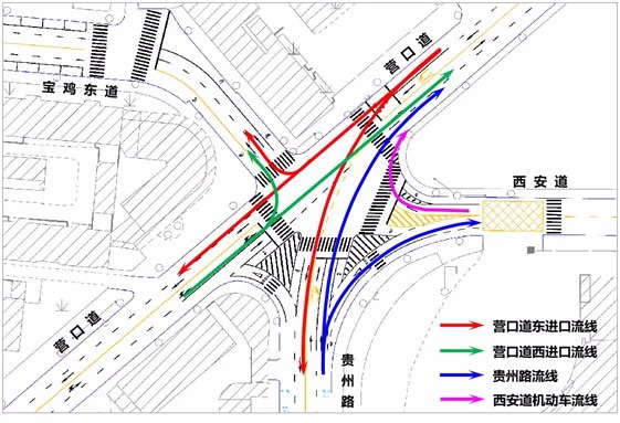 2) 营口道与贵州路交叉口