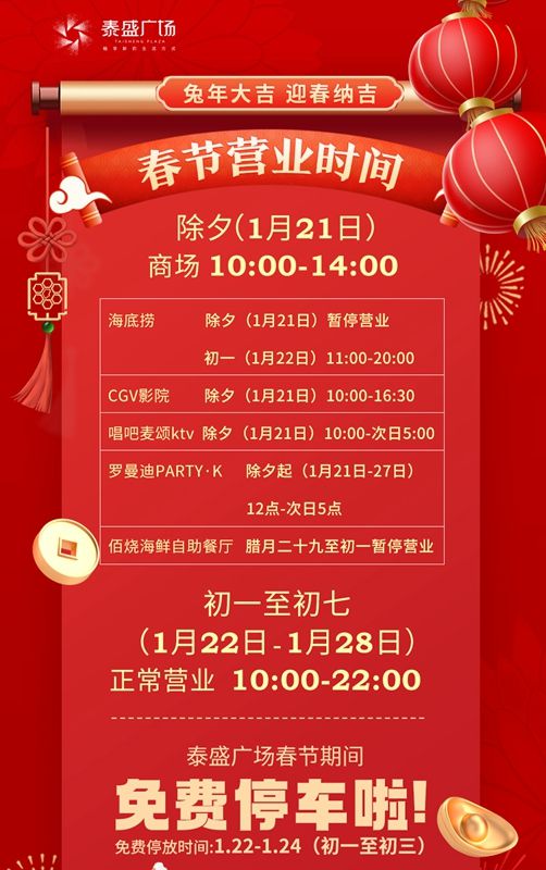 值得点赞的是,初一到初三,泰盛广场停车场全部免费。除了蹭暖,还可以蹭停车场。万达、和谐、万象汇、吾悦,难道不值得你们反思和学习吗?(西城姊妹花)
