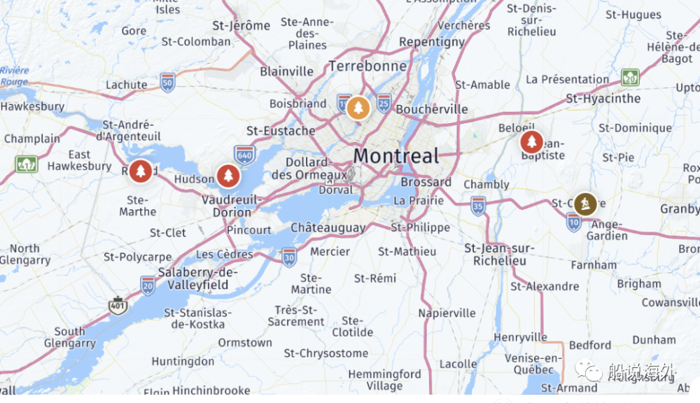 根据魁省旅游局网站(https://www.bonjourquebec.com/en-ca/explore/seasons/fall)10月20日更新的全省各地的枫叶变红情况,蒙特利尔周边三个地方的树叶已经接近峰值(Near Peak):