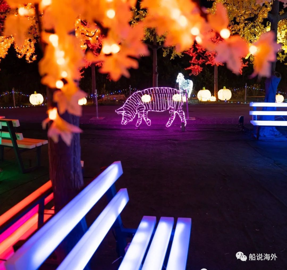 与去年的灯光秀类似,灯光展以万圣节主题开始,展示秋天的颜色,有发光的女巫和他们的怪物同伴,将引导你走向幽灵般的南瓜地。