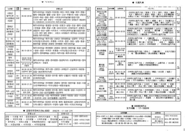 公交济州公交分市内线和市外线,市外线基本都在济州的市外巴士终点站发车