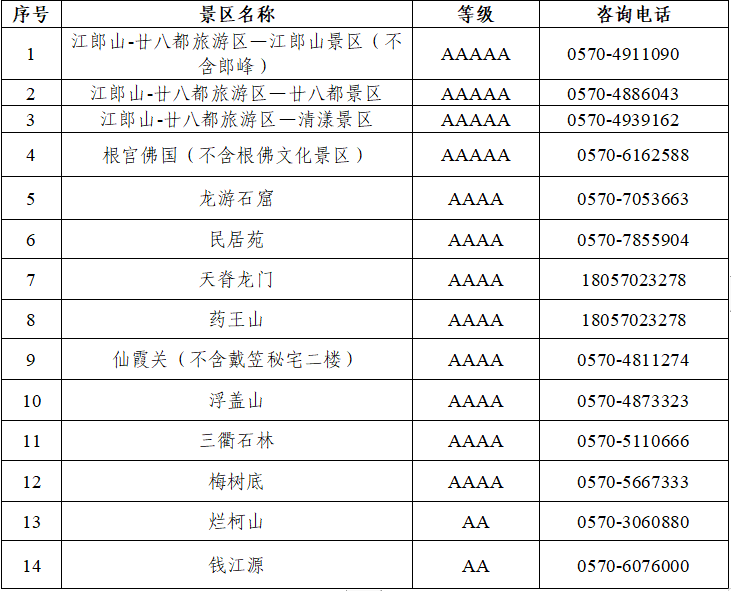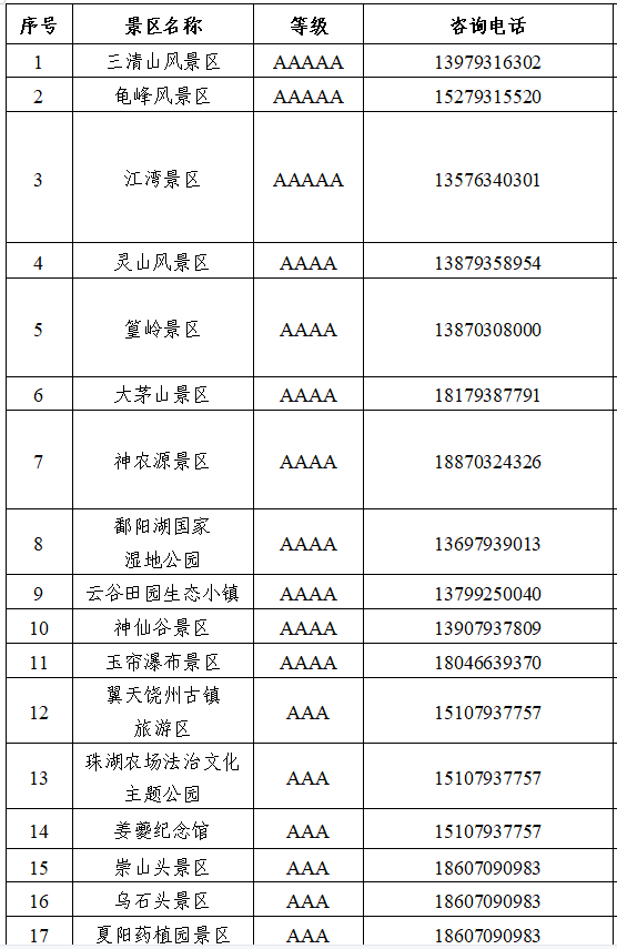 三清山风景区等多家5A级景区,