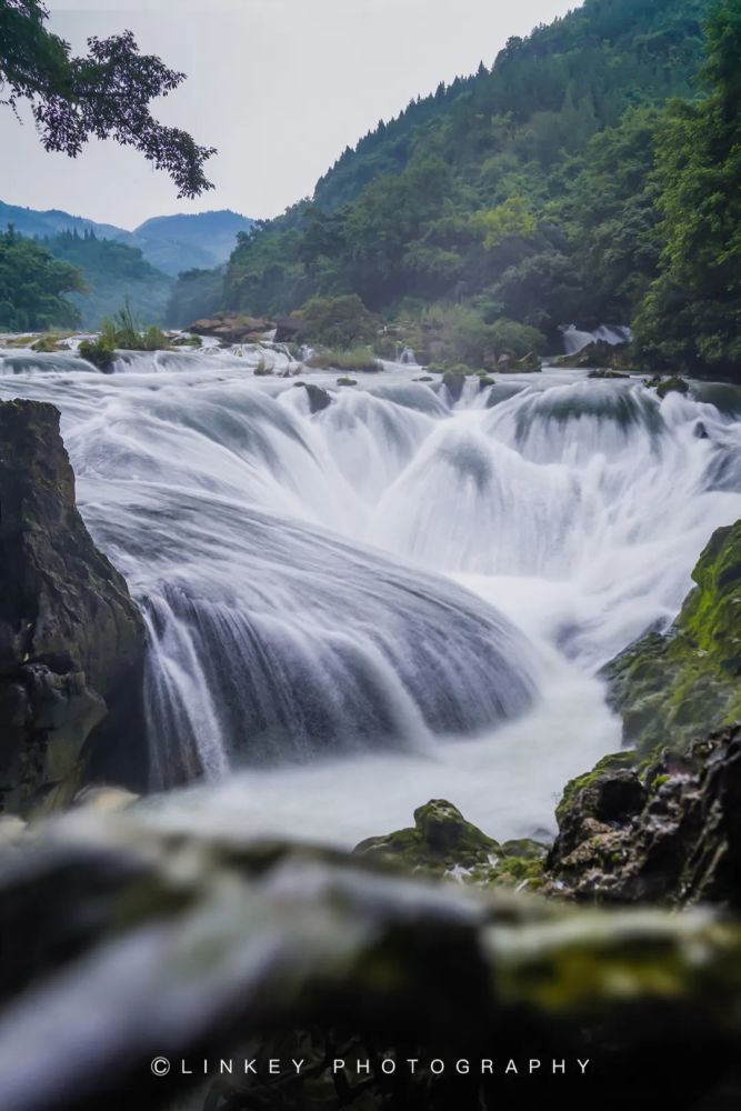 相比于前面两个区域,这一块算是最没有技术难度的景区了。按照导览上车,到了景区后下车,往里面走木栈道或步行道都是通往最后瀑布观景台的路。这边有名,完全是因为《西游记》电视剧中其中的一个过瀑布的镜头在这边拍摄的,看过瀑布之后还有一些关于九九八十一难的墙面大型解说文字。