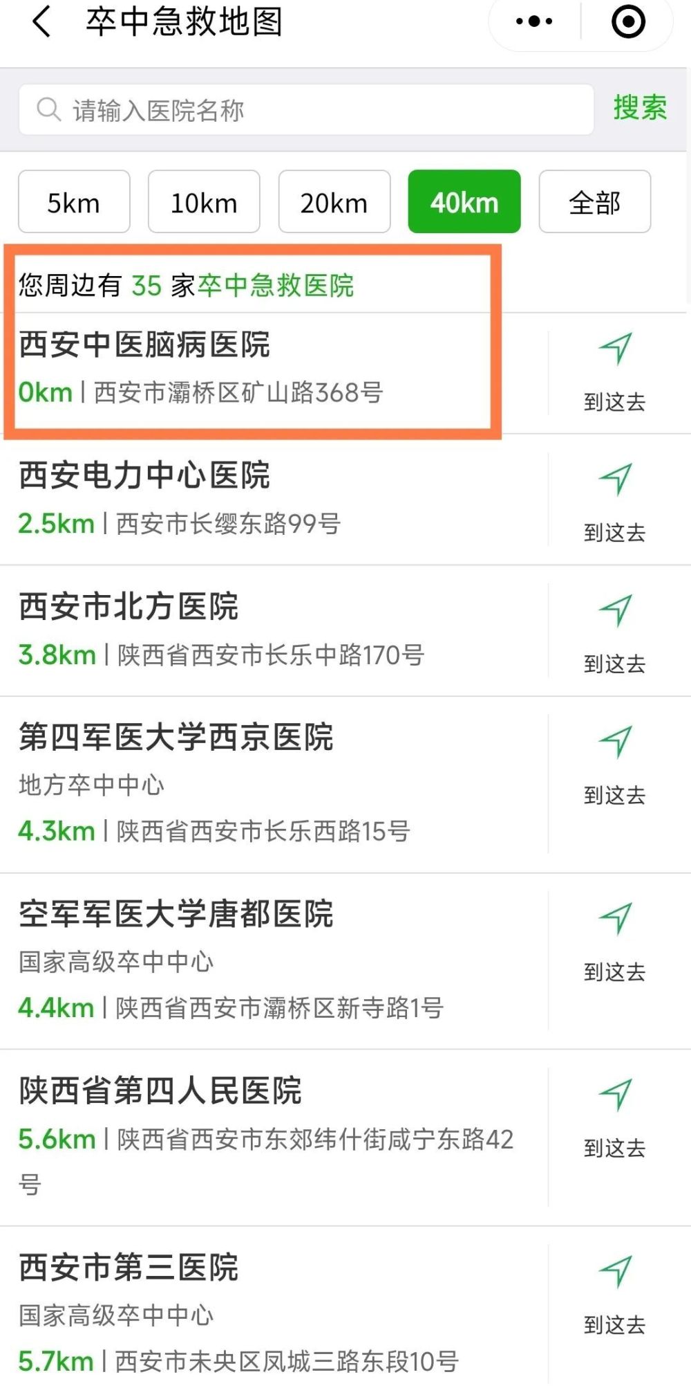 就近选择医院提供了精准导航
