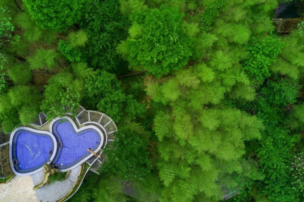 花茶居茶道馆、半边空间(道文化休闲养生)、戏台、森林慢步道