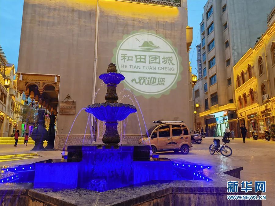 夜幕降临后的和田市团城。新华网李梦婷摄