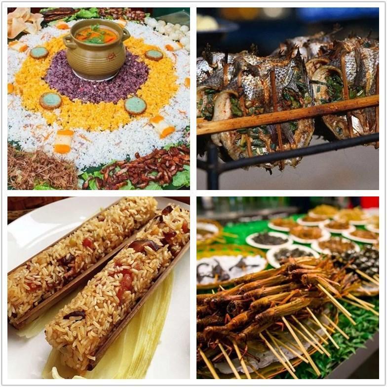 云南十八怪,三个蚊子一盘菜;蚂蚱当作下酒菜,竹筒当作水烟袋!云南有着“一山分四季,十里不同天”的美景,也有着“一天吃四季,十餐不同味”的美食。西双版纳以傣族为主,傣味菜以糯米、酸味及烘烤肉类、水产食品为主,多用野生栽培植物做香料,具有独特的民族风味。美食:芒果凉拌、虫宴(蚱蜢、蝎子、竹虫、蜜蜂幼虫等)、手抓饭、香茅草烤鱼、菠萝饭、香竹烤饭、傣味烧烤等。