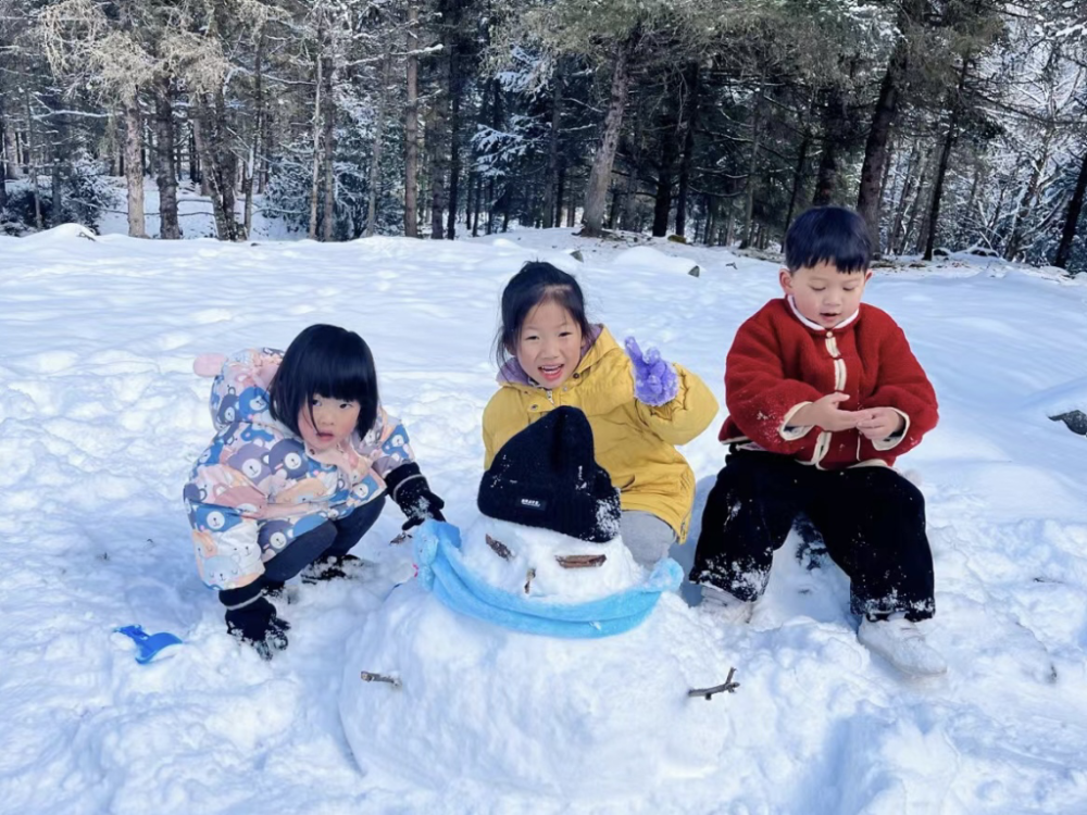 小朋友在雪地里堆起了雪人。受访者供图