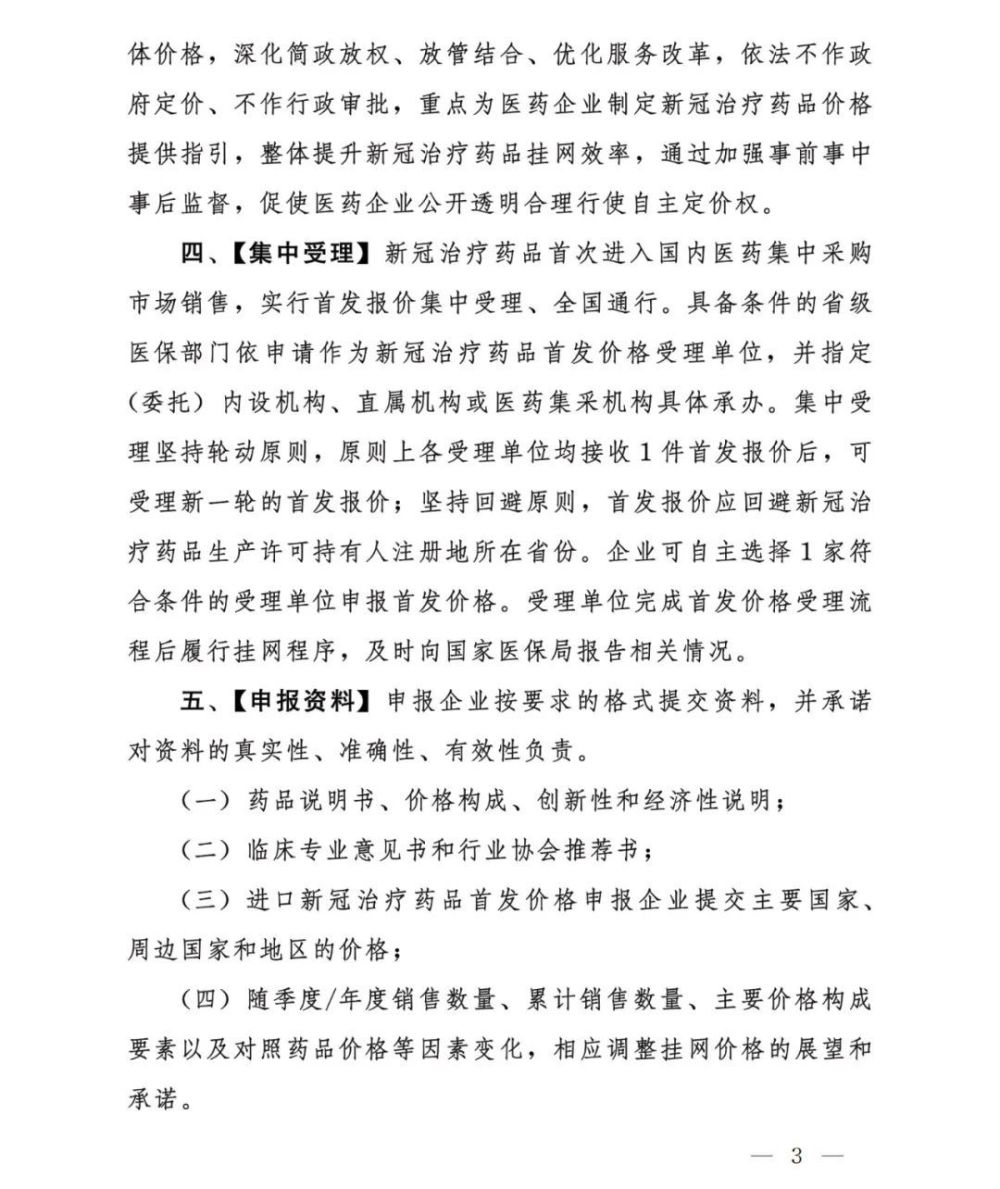 日前,国家医保局办公室印发《新冠治疗药品价格形成指引(试行)》,北京、天津、河北、上海、江苏、四川等6个省份医保局作为新冠治疗药品首发价格受理单位,企业可自主选择1家符合条件的受理单位申报首发价格。