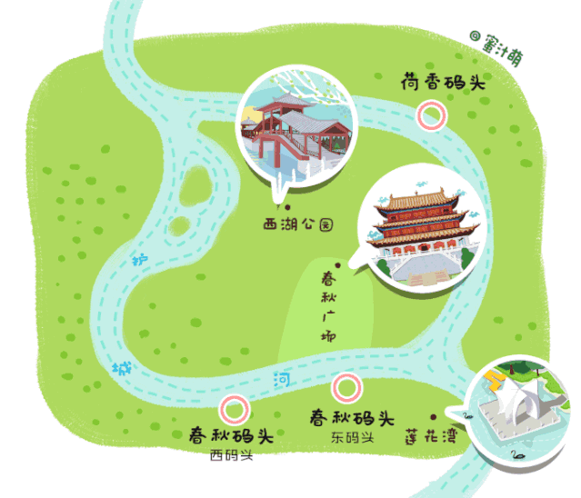水上公交于航行线路总长5.3公里,环绕许昌老城一周,用时大约50分钟。船型种类比较多,大家可以根据自己的需要选择乘坐。目前只开放了春秋码头,这里既是上船点,也是下船点。