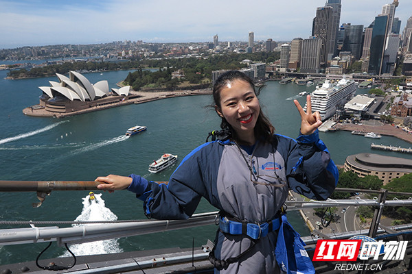 2018年新年,张馨文在澳洲悉尼大桥顶上,俯瞰整个悉尼歌剧院。