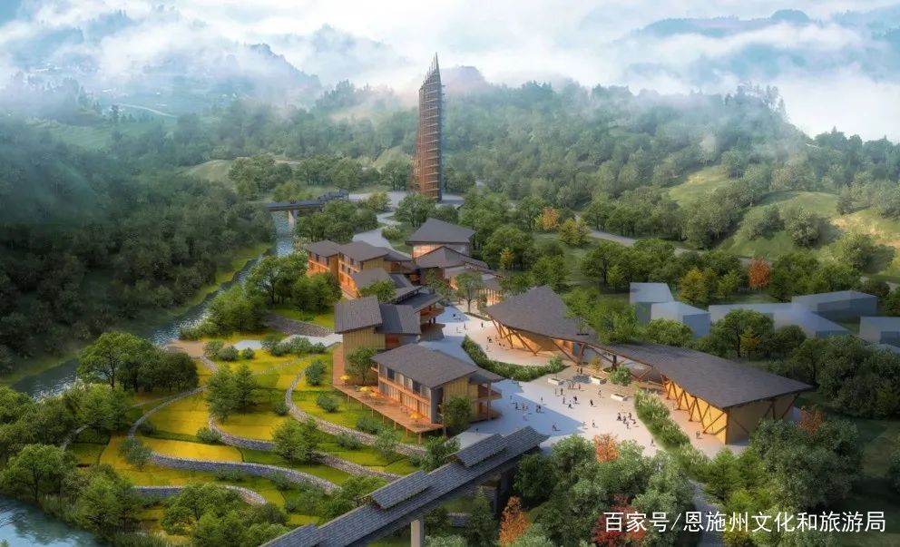 景区由旅游集散中心、咸池游客换乘中心、耍耍街、中意·国际建筑研学营、墨客廓桥、摩宵楼、舍巴田园、地仙桥、陌上花开、彭家寨吊脚楼群等景点组成,是集土家文化研究、建筑艺术展示、国际学术交流、农耕文化体验、沉浸式演出、康养休闲度假等项目为一体的文化旅游新地标,已列入文化旅游部优先项目和湖北省“十三五”服务业重点项目。