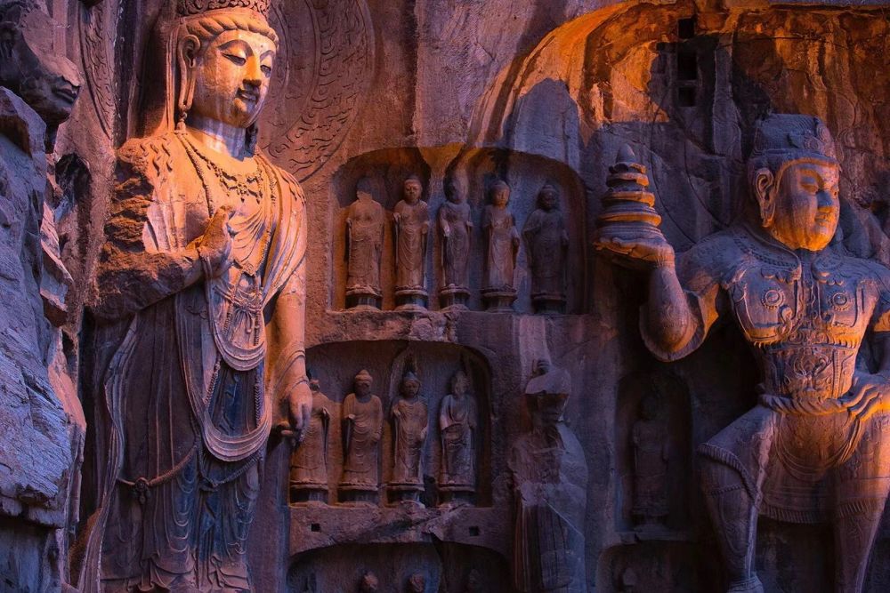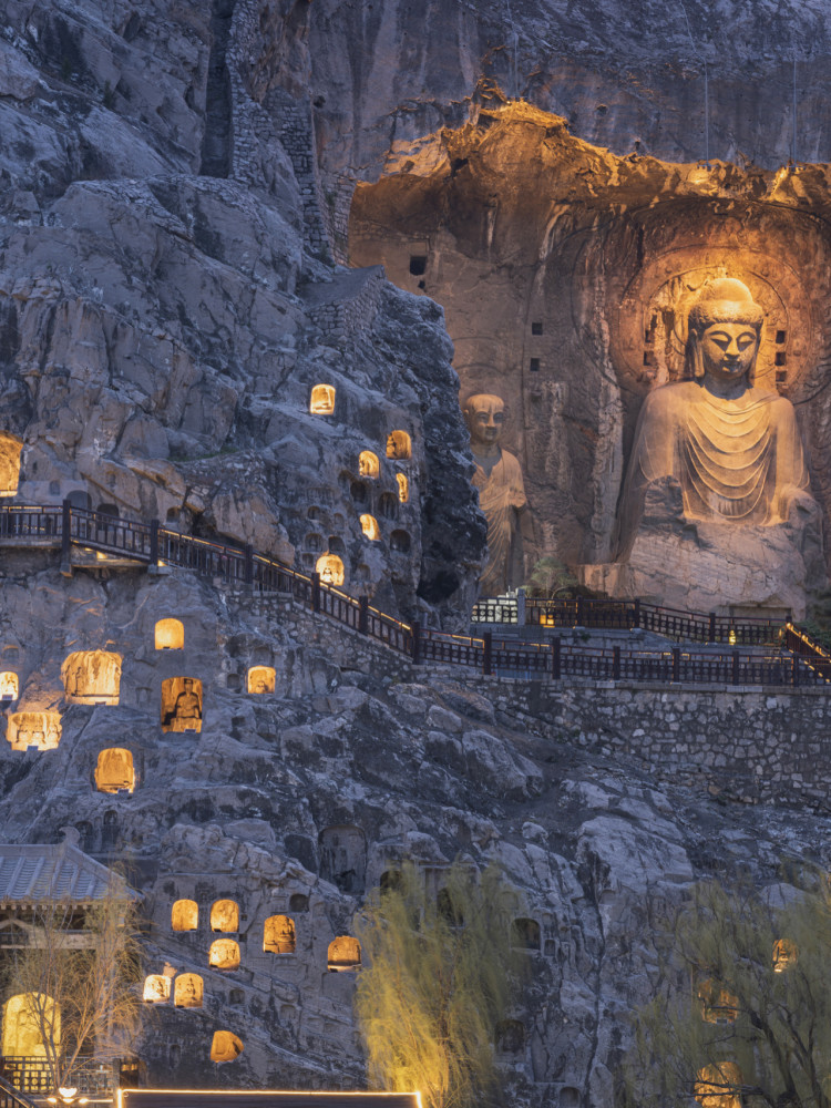 龙门石窟是世界上造像多、规模大的石刻艺术宝库,被联合国科教文组织评为“中国石刻艺术的最高峰”,并与敦煌莫高窟、云冈石窟并称中国三大石窟。