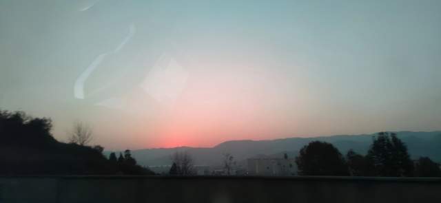 回程路上,夕阳西下,残阳如血。