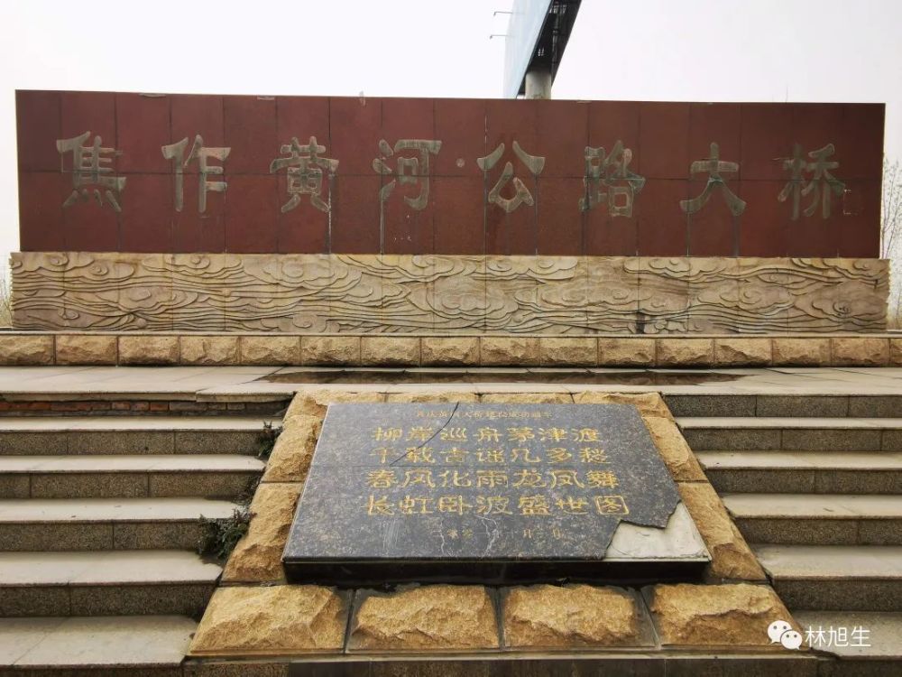 (南河渡黄河大桥,原称焦作黄河公路大桥,纪念碑下的诗写于2001年10月1日,作者不详)