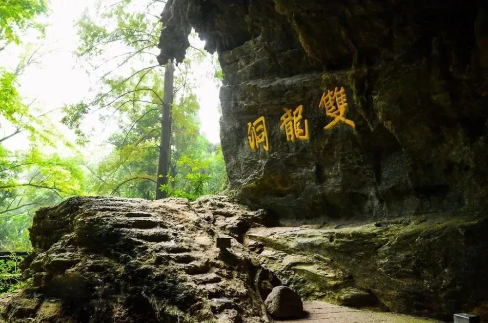 在炎热的夏季到双龙洞游玩,步行到洞口的5分钟路程,一定会让你有“上山汗如雨,入洞一身凉”的感觉,双龙洞分为外洞、内洞和耳洞。在外洞的洞壁上可以看到很多的摩崖石刻,还没走到洞口,就可以远远地看见洞口左上方的石壁刻着“双龙洞”三个金黄色大字,相传出自唐人手笔。洞顶崖壁上一排横字“三十六洞天”五个大字国民党元老、著名书法家于右任的墨宝。