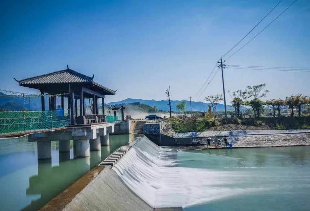 釜章村北靠积道山,南临八仙溪,环境优美,民风淳朴,前有秀美八仙溪绕村而过,后有历史悠久的积道山名胜古迹。八仙溪的最美河段就在这里,婺剧《僧尼会》的故事就发源于此。这里溪水清清,绿树掩映,一片生机盎然。沿着绿道游玩,溪边浣衣的阿姨,波光粼粼的水面,不远处又是壮观的水堰,无论怎么看都是一帧帧风景。
