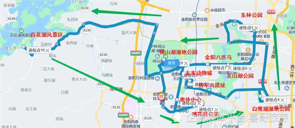 第十一站,百花湖风景区-观山湖区,行程结束。