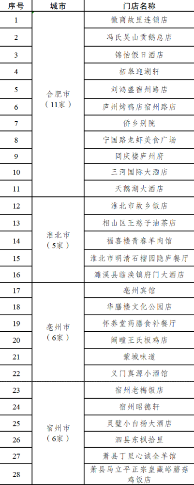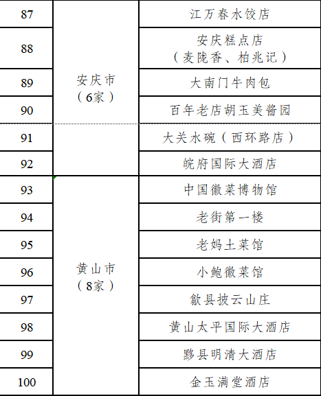体验店:同庆楼庐州府/耿福兴(凤凰美食街店)/红杨山庄/金都国际酒店/绩溪徽顺酒店/中国徽菜(徽厨)博物馆/旌德海螺酒店